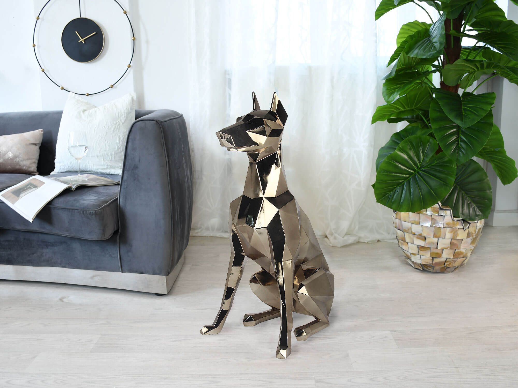 Polygon Doberman 82cm Gold Resin Indoor Sculpture